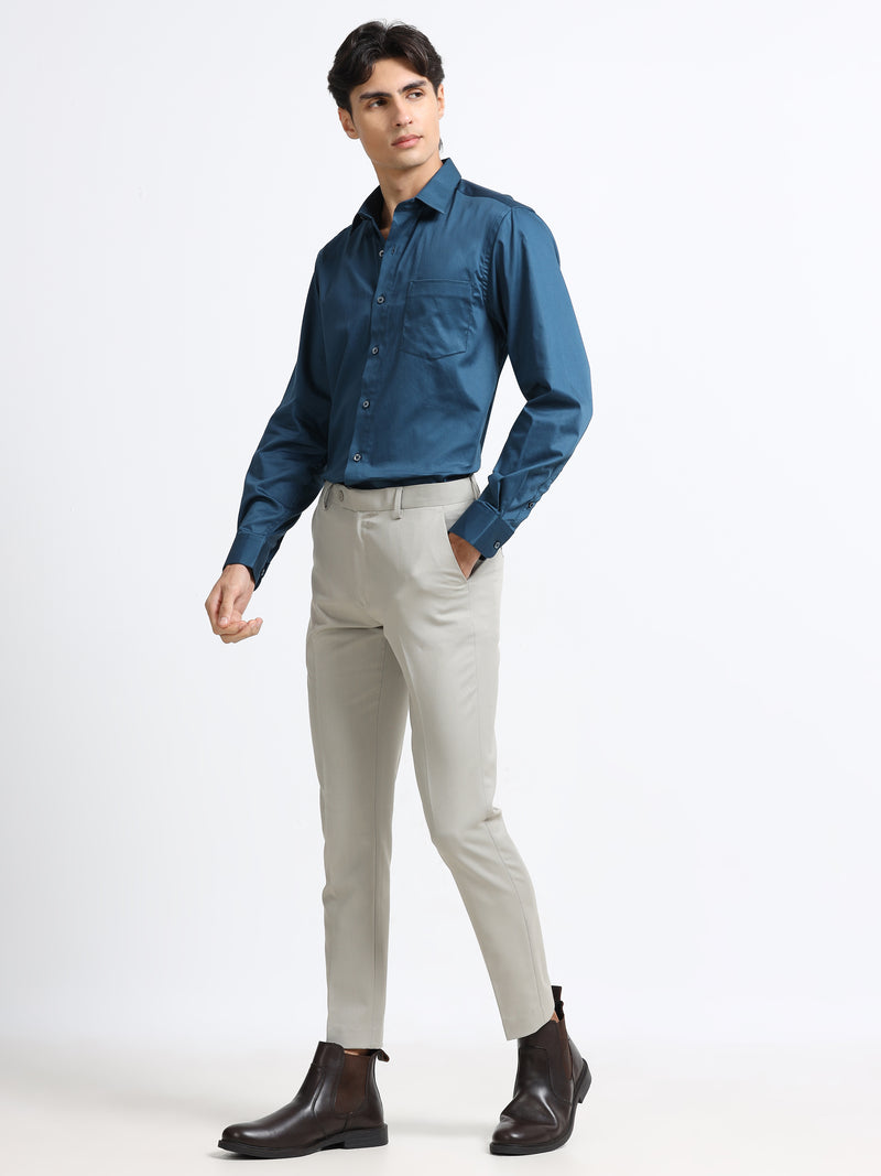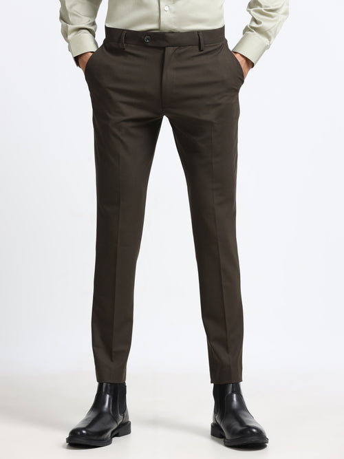 Men Grey Ankle Fit Formal Trouser - 4-Way Lycra